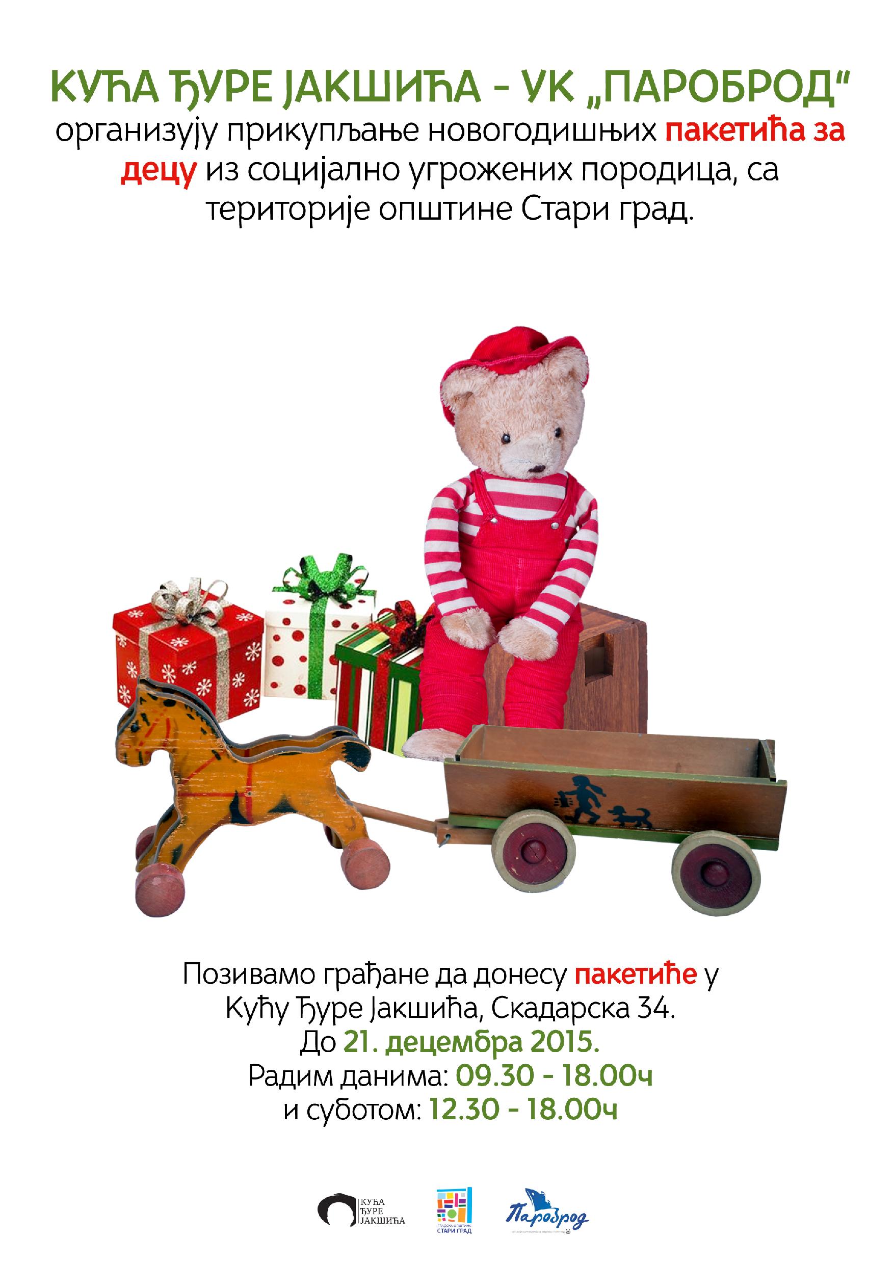 Позивамо грађане да донесу пакетиће у Кућу Ђуре Јакшића, Скадарска 34,