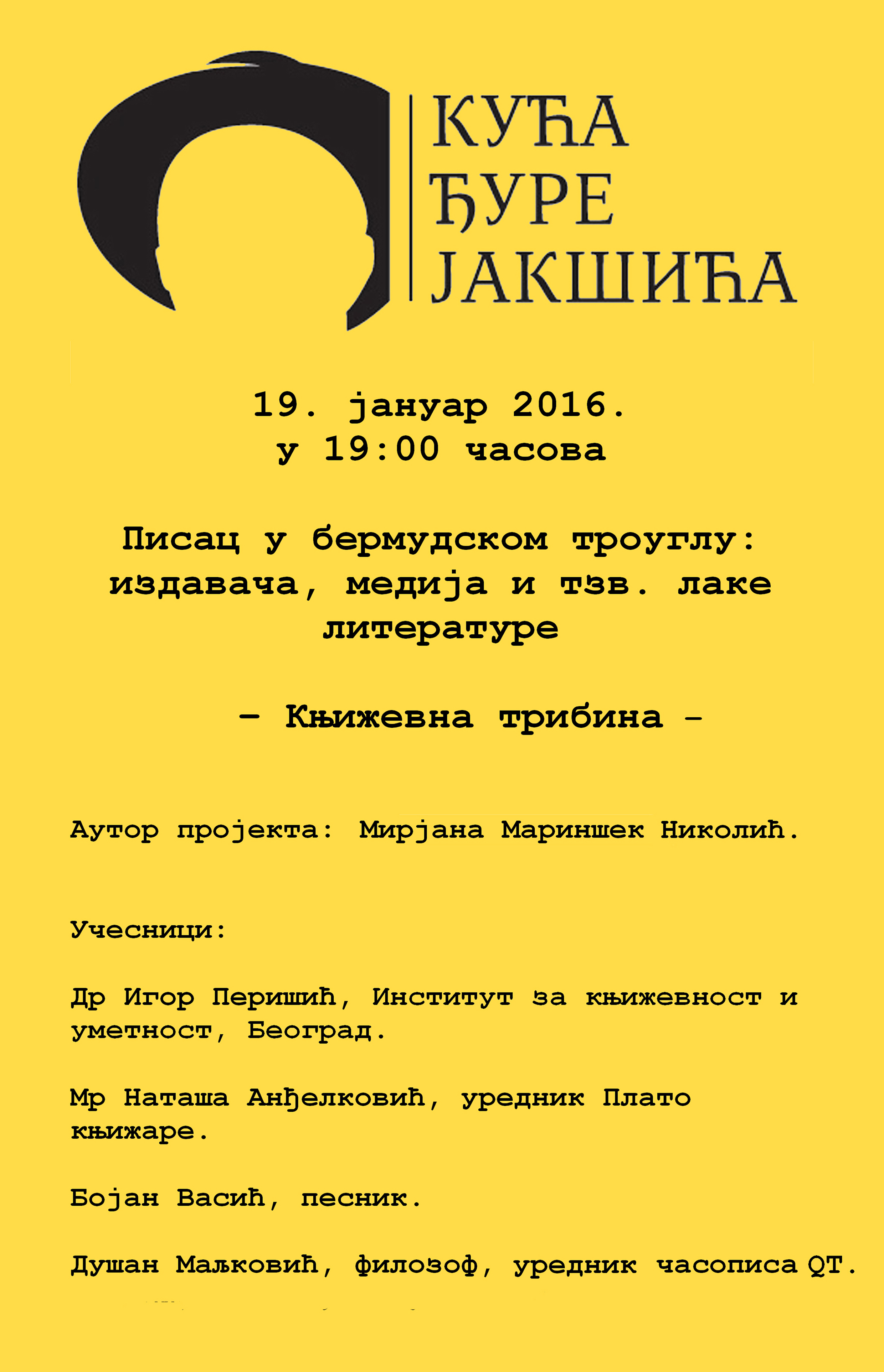 Трибина „Писац у бермудском троуглу медија, издавача, и тзв. лаке књижевности“, Учесници: Игор Перишић, Наташа Анђелковић, Бојан Васић, Душан Маљковић и Мирјана Мариншек Николић