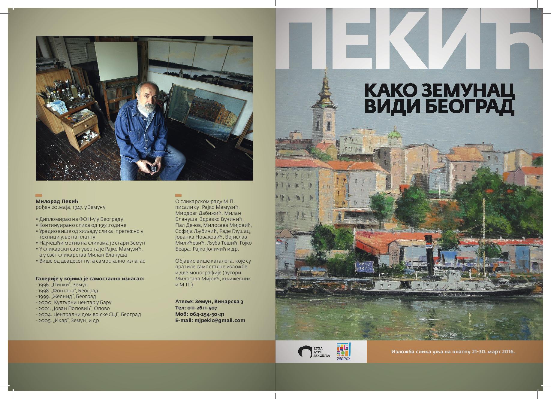 Милорад Пекић (1947) је дипломирао на ФОН-у у Београду. Континуирано слика од 1991.године, те са овом изложбом у Кући Ђуре Јакшића обележава 25 година рада. Најчешћи мотив на његовим сликама је урбани Земун. У сликарски свет увели су га Рајко Мамузић и Милан Блануша.Више од двадесет пута је самостално излагао. О сликарском раду М.Пекића писали су Рајко Мамузић, Миодраг Дабижић, Милан Блануша,Здравко Вучинић, Пал Дечов,и др. Објавио је више каталога са самосталних изложби и две монографије.