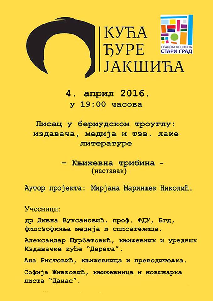 „Писац у бермудском троуглу медија, издавача и такозване лаке књижевности“ ауторски пројекат Мирјане Мариншек Николић
