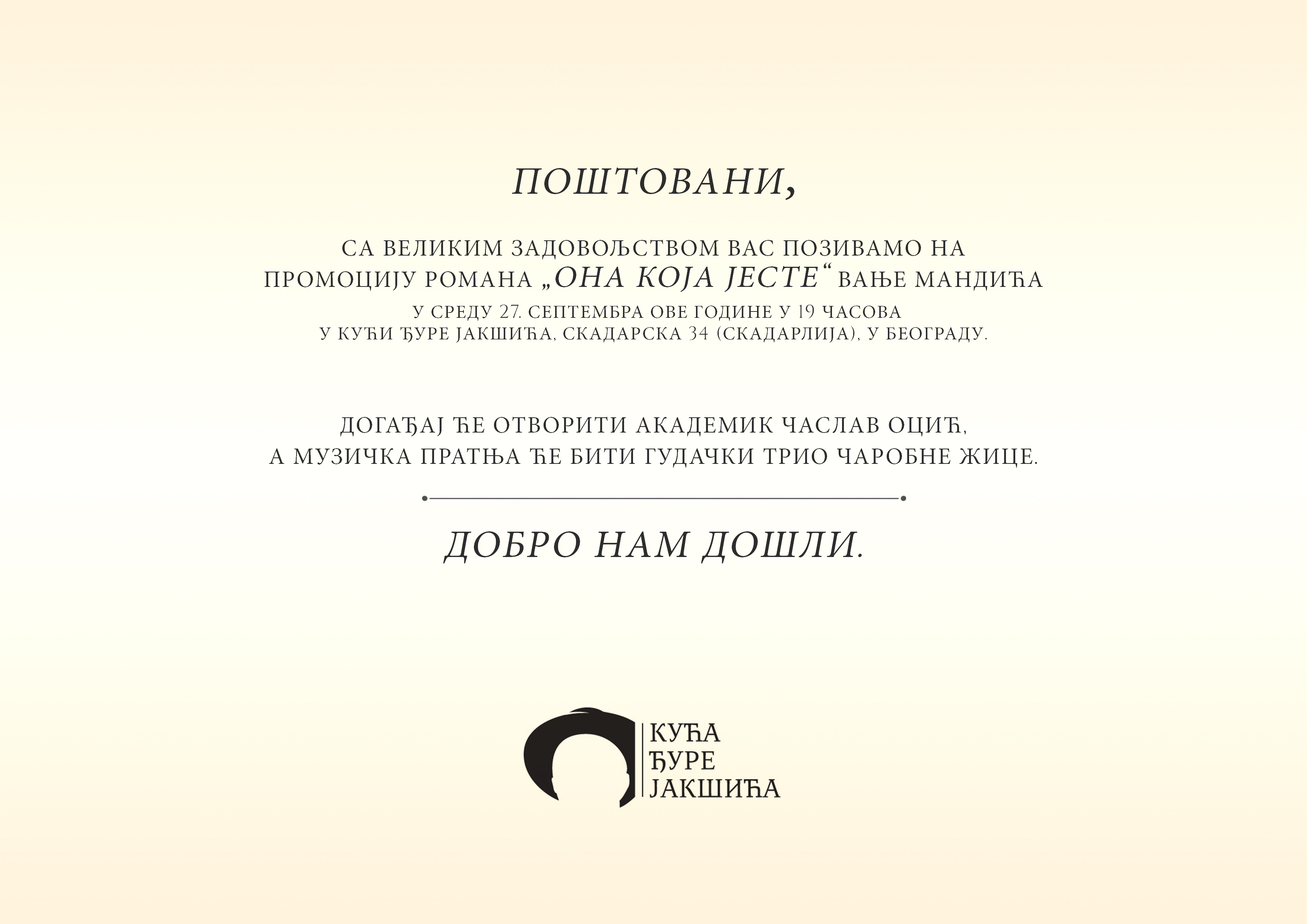 Промоција романа „Она која јесте“ Вање Мандића, среда, 27. септембар у 19ч