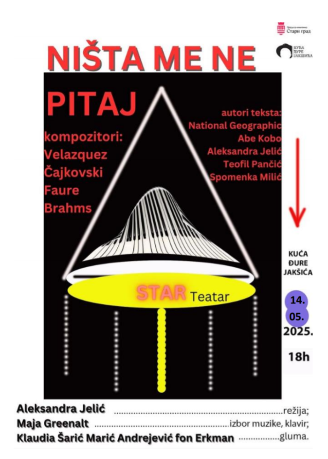 А у среду, 14. маја дођите да погледате ову драмску представу СТАР театра, која упечатљиво слика данашње друштво кроз причу о животу једне жене кроз њена сећања и суочавање са депресијом. Кроз глуму, покрет и музику у сјајном извођењу глумице Клаудие Шарић Марић и пијанисткиње Маје Гриналт, проживећете много тога.