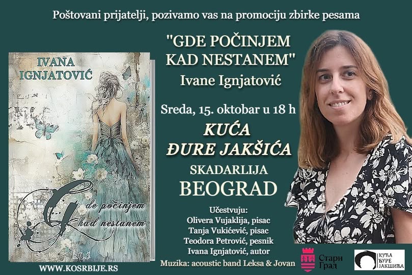 Са великим задовољством у среду, 15. октобра представљамо још једно дело у издању Књижевне омладине Србије. Овај пут је то књига поезије „Где почињем кад нестанем“, ауторке Иване Игњатовић.