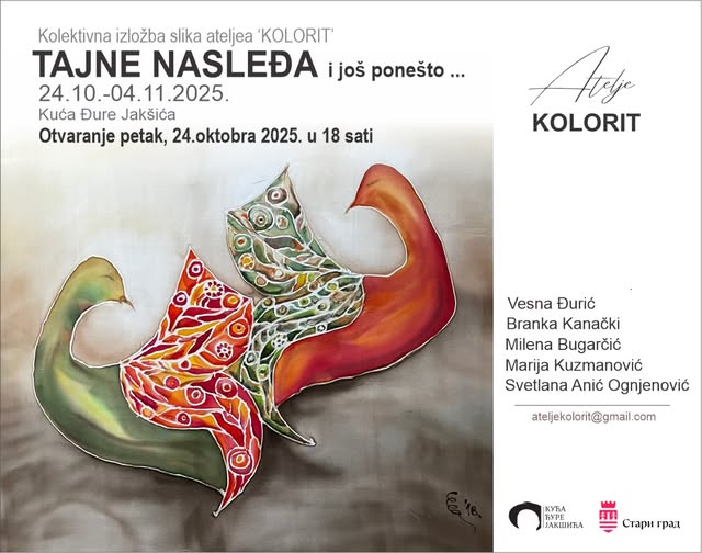 Настављамо са низом сјајних изложби у нашој галерији и са великим задовољством најављујемо колективну изложбу Атељеа КОЛОРИТ, под називом ТАЈНЕ НАСЛЕЂА и још понешто…