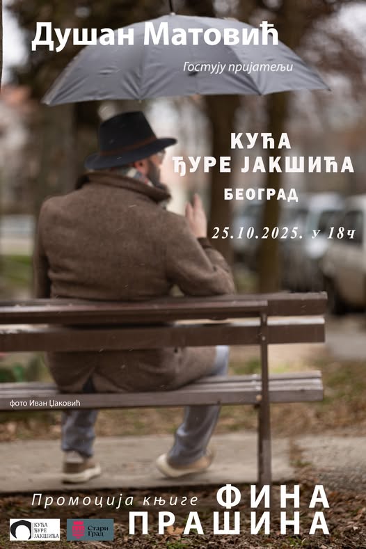 Задовољство нам је што можемо да најавимо још једну у низу добрих поетских промоција! У суботу, 25. октобра, представиће нам се Душан Матовић са својом збирком песама ФИНА ПРАШИНА.