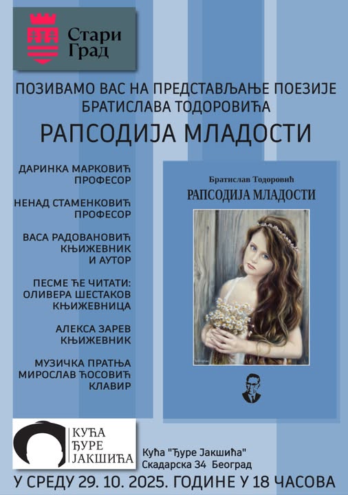 У среду, 29. октобра представићемо ново издање прве песничке збирке Братислава Тодоровића, поетичног назива „Рапсодија младости“.
