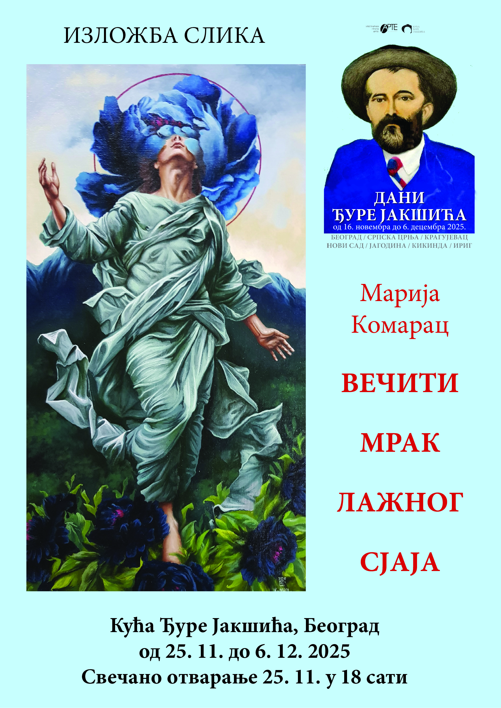 У оквиру манифестације ДАНИ ЂУРЕ ЈАКШИЋА са великим задовољством најављујемо изложбу слика ВЕЧИТИ МРАК ЛАЖНОГ СЈАЈА, ауторке МАРИЈЕ КОМАРАЦ, која ће у Кући Ђуре Јакшића моћи да се погледа од 25. новембра до 5. децембра 2025. године.