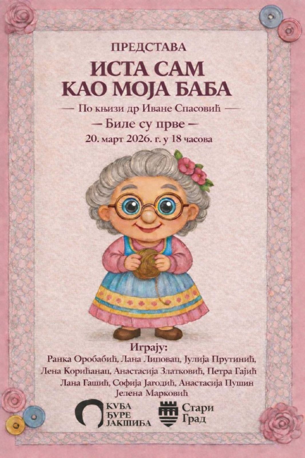 Поново играмо представу ИСТА САМ КАО МОЈА БАБА, по књизи „Биле су прве“, др Иване Спасовић.